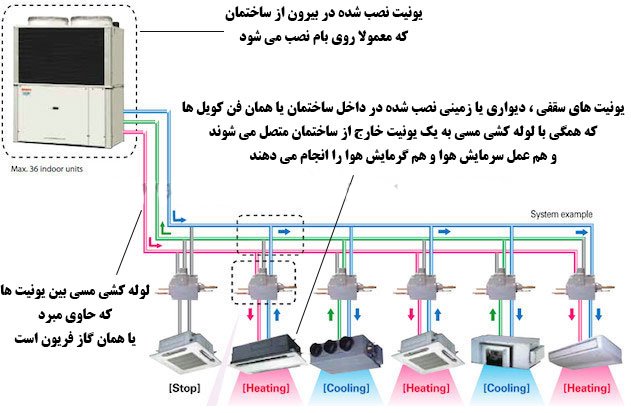 There are many different ways to classify different types of heating and cooling systems of buildings (air conditioning) in different groups, which we refer to in this text. In this text, we generally describe the structure of 10 types of widely used cooling and heating systems.